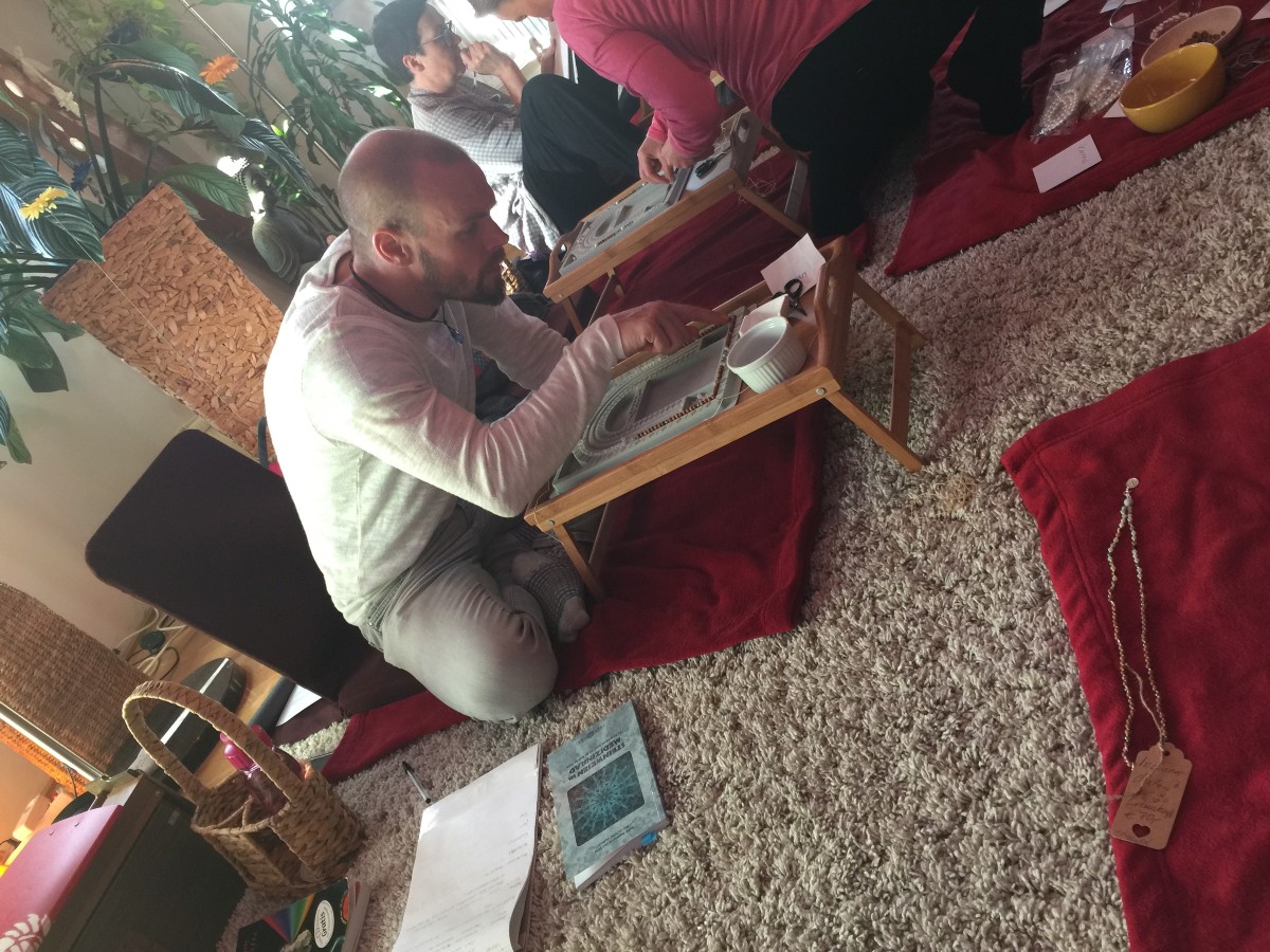 Es wird ein wundervoller Tag in Stille sein. Ganz für Euch und Eure Mala in einer angenehmen Gesellschaft mit anderen Menschen. Jeder wird seinen eigenen kleinen Bodentisch und Bodenstuhl haben. Sein Perlensortierbrett und eine Pinzette.